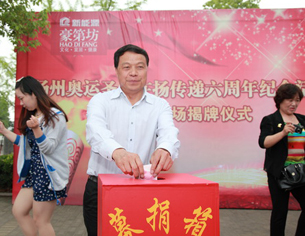 5月26日是北京奥运圣火在扬传递六周年纪念日。5月25日上午,中国火炬手联合会执行主席、中国奥运火炬手协会理事长黄海军等领导专程从北京来扬,与扬州部分奥运火炬手聚会,并为坐落在新能源豪第坊的火炬广场揭牌。在活动现场,部分火炬手还当场捐款,为火炬广场体育设施建设添一把柴。为助力北京申办2022年冬奥会,火炬手们还在条幅上签名,表达扬州火...