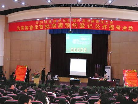 3月10日下午,邗江青少年活动中心热闹非凡,1000多名准业主会聚一堂,兴致勃勃地参加新能源虎豹.和美第首批100套房源预约登记摇号活动,短短的两个多小时,经过扬州市公证处公证员的现场公证,首批27种经典户型共100套住房名花有主。此次活动像和煦的春风给节后的扬州房地产市场带来温暖和欣喜。