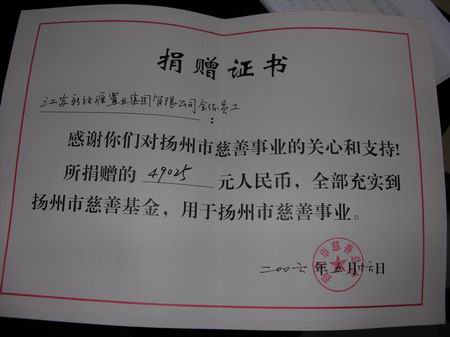 市慈善总会授予新能源董事长、总经理包广林先生扬州市慈善总会副会长;称号