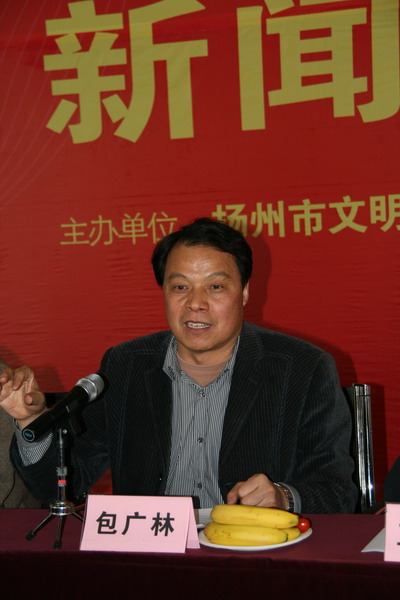 图为扬州市委宣传部副部长、文明办主任王晓庆作重要讲话