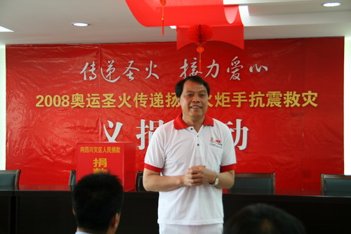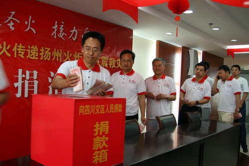5月17日上午10时,扬州50多名奥运火炬手齐聚公元国际大厦,通过爱心捐赠表达了他们对灾区人民的一片关爱。本次捐款活动中50余名火炬手及部分护跑手共计捐款17万余元,其中新能源集团董事长包广林捐款10万元整。