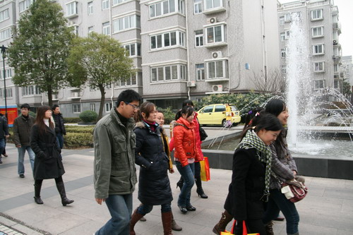 12月27日,参加维扬开发区青年联谊会的60余位男女青年参观了花样年华工地和新能源置业开发的扬州仅有的两个获得中国房地产业最高大奖的楼盘月亮园、奥都花城。