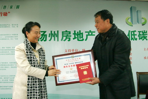 由扬州市人民政府、全国工商联房地产商会、市房管局、市地产商会、市房地产行业协会、新能源置业集团联合发起的扬州房地产业绿色低碳行动; 2009年12月28日下午在在扬州公元国际大厦正式拉开帷幕。会长江苏新能源置业集团董事长包广林刚宣读完《扬州房地产业绿色低碳行动倡议书》就得到了在场所有房地产开发企业的积极响应,纷纷在绿色低碳树;上签下了自己的姓名。全国工商联房地产商会会长聂梅生、江苏省工商联房地产商会副会长肖梅、市人大常委会副主任孙永如等见证了这一行动的开始。