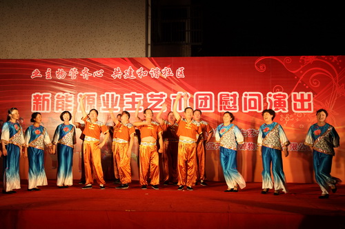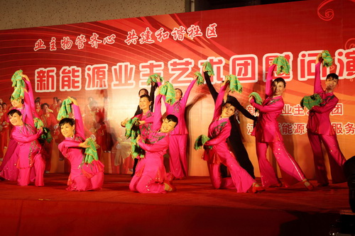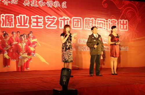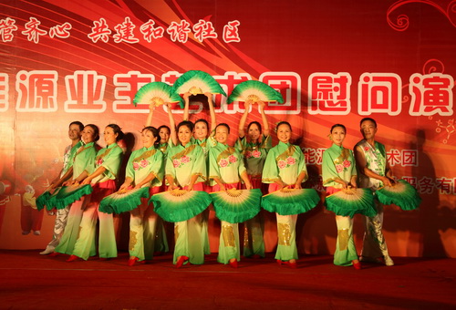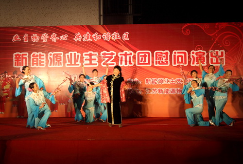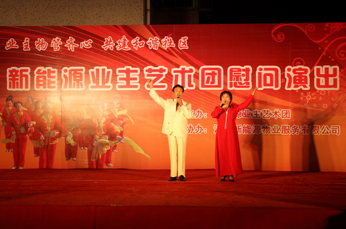 9月29日,由新能源物业公司主办,新能源业主艺术团在兰苑中心广场举办了一场业主物管齐心,共建和谐社区;慰问演出。整场晚会持续了一个半小时,收到了良好的效果。