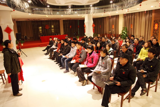 2012年2月22日至3月4日江苏新能源置业集团在豪第坊会所举办了2012年度公司新春学习培训班。在面对当前房地产形势,新能源人未雨绸缪苦练内功。提出了转型发展、改革创新、提高品质的要求,出台了一系列文件,并就此如何才能做到牢记于心并熟练运用于实践?为进一步帮助干部员工提高认识,提高技能,增强适应形势、适应改革、适应转变的能力,以积极的心态和扎实的功底,完成集团提出的各项目标任务,特举办2012年度公司新春全员学习培训班。