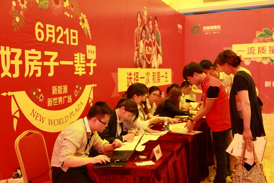 6月21日是新能源新世界广场首期8幢小高层开盘的日子,一大早,泰兴市民就从四面赶来,将临时搭建的拥有2000个座位的摇号大棚坐得满满,市民凭摇出的号码进入销售大厅选房购房。据统计,开盘3小时就劲销300余套。