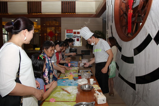 售楼中心里,一群孩子们和自己的父母或者爷爷奶奶一起在做月饼,尽管手忙脚乱,却也不亦乐乎。也有一些来宾就这样静静的站在桥头,或者坐在亭子里,一边闲聊,一边看着眼前的风景。有的还骑上双人自行车沿着豪第坊的道路一路前行,倒也是逍遥自在。