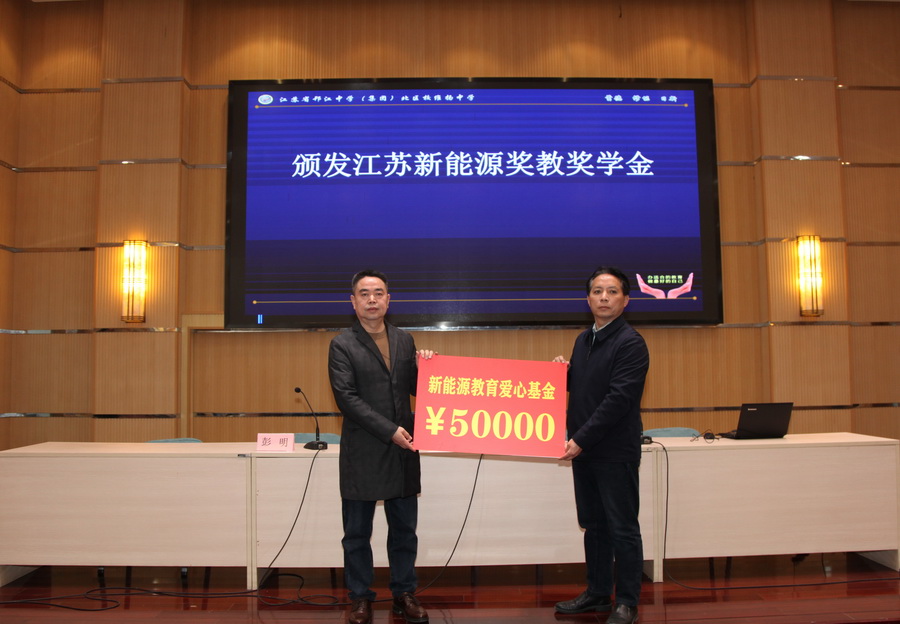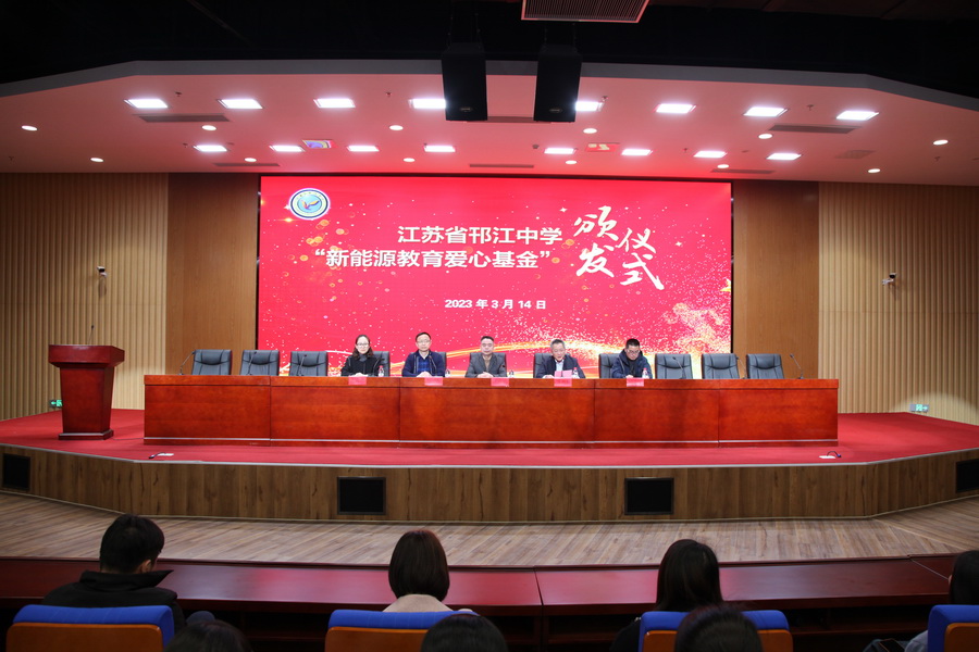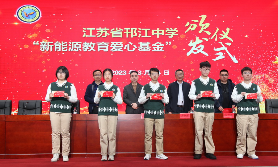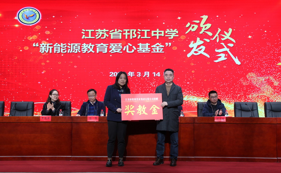 3月14日,“新能源教育爱心基金”颁奖仪式分别在江苏省邗江中学和维扬中学举行,邗江中学高三毕业班学生和维扬中学初中毕业班学生参加了活动。