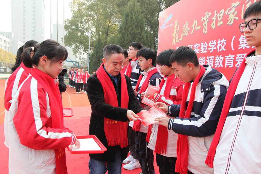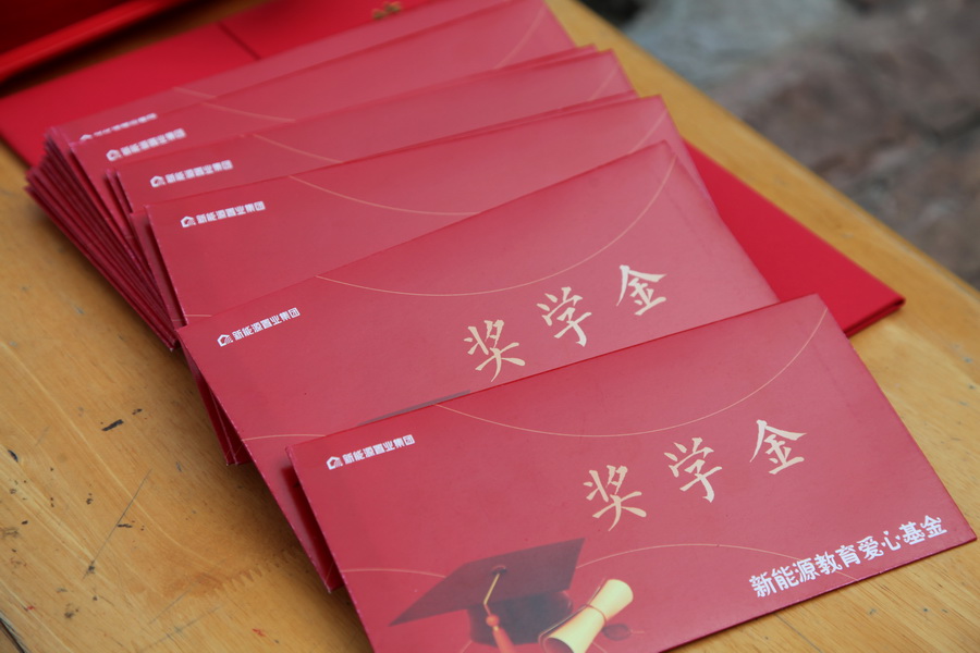 ‘新能源’在发展的同时,一直将支持教育、参与社会公益作为企业文化的重要组成部分,做到取之于社会,回馈于社会。今天的奖学金、奖教金共96000元,凝聚着‘新能源’全体员工的一片爱心,将激励同学们努力拼搏,奋发向上,拿出愚公移山的志气和滴水穿石的毅力,脚踏实地、埋头苦干,在这次中考中取得佳绩。”