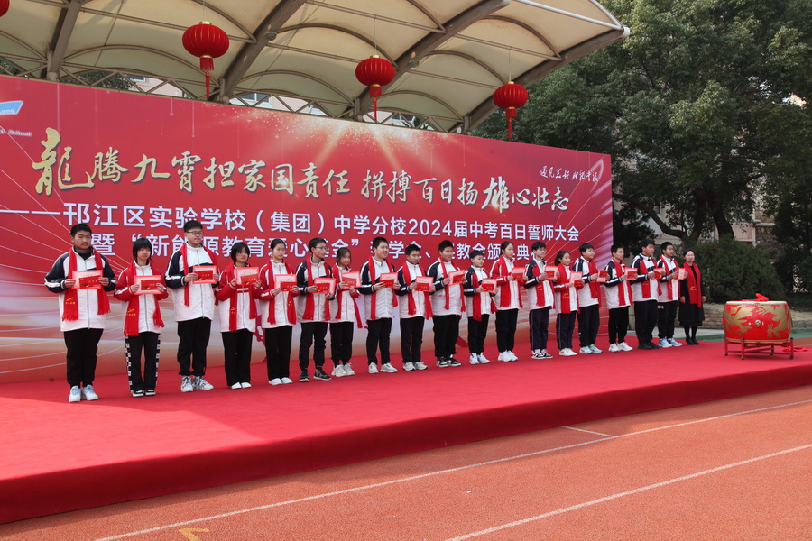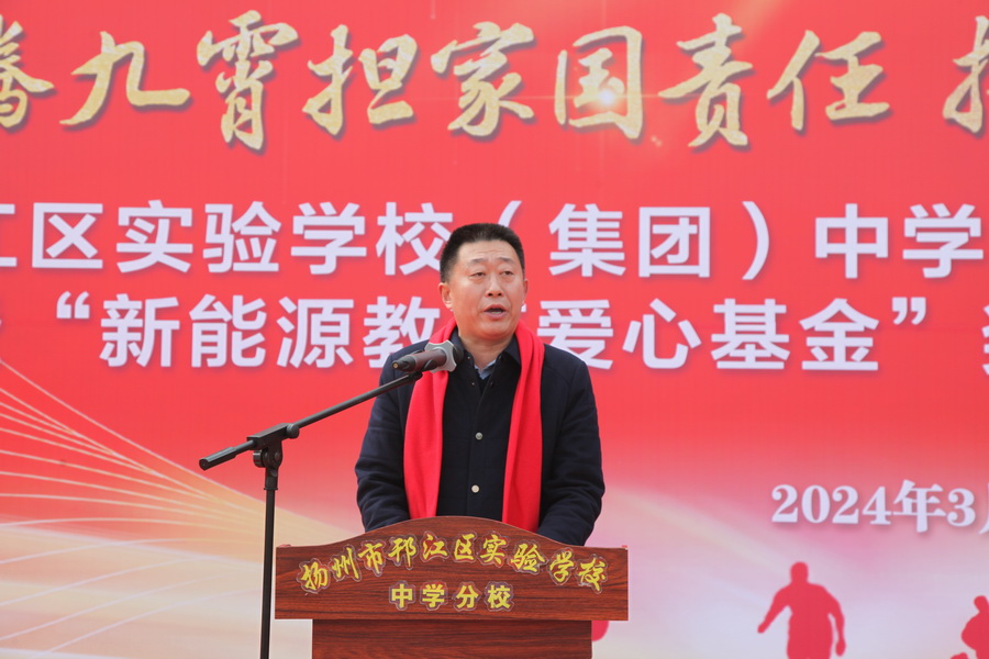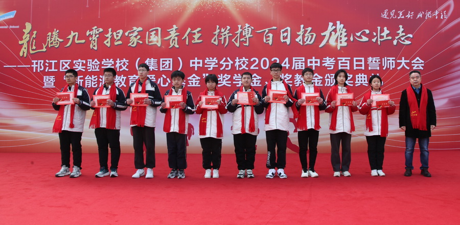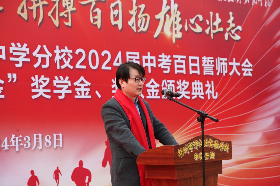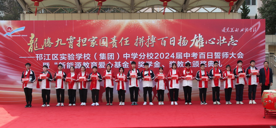 “龙腾九霄担家国责任,拼搏百日扬雄心壮志。”3月8日上午,邗江区实验学校(集团)中学分校举行2024届中考百日誓师大会暨“新能源教育爱心基金”奖学金、奖教金颁奖典礼,江苏新能源置业集团总裁王秋云、邗江区教育局副局长、邗江区实验学校校长葛光出席活动。
