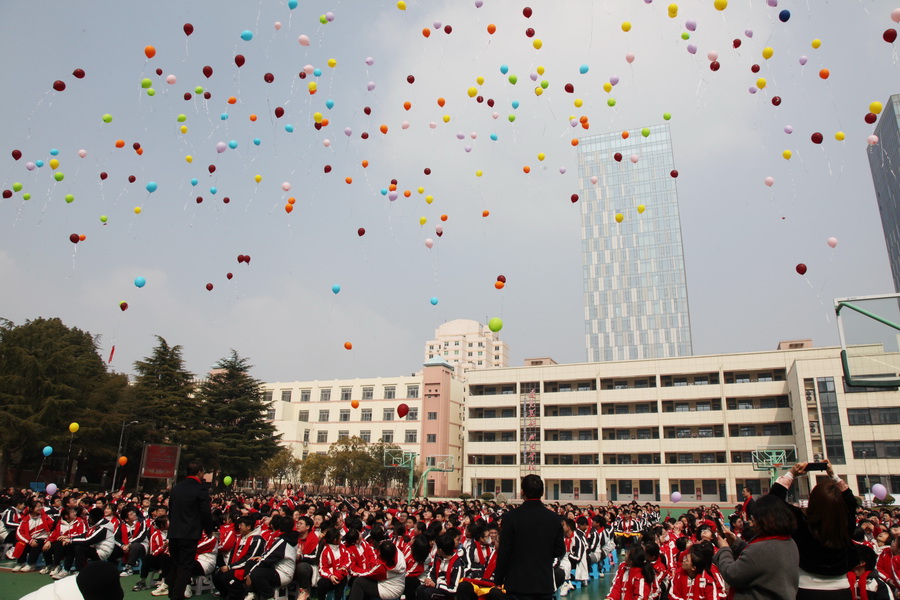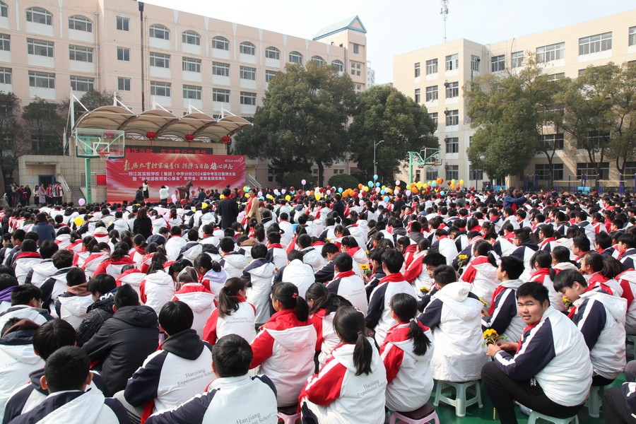 10时整,邗江区实验学校九年级学生齐聚该校青春广场。颁奖典礼在《我相信》《相信自己》《怒放的生命》乐曲中拉开序幕,校领导宣读表彰决定,王秋云为优秀学生代表和优秀教师代表颁发奖学金、奖教金。接着,校长寄语,家长祝福,“以青春之名,赴梦想之约”。在气势如虹的擂鼓声中,同学们宣誓:“ 三年磨砺,意志坚定。百日竞渡,壮志凌云。 唯学是先,冲锋在前。拼搏实干,智慧点燃。悬梁刺股,同心并肩。科学作息,苦练百天。决胜中考,笑迎凯旋。为我邗实,再续佳篇。”